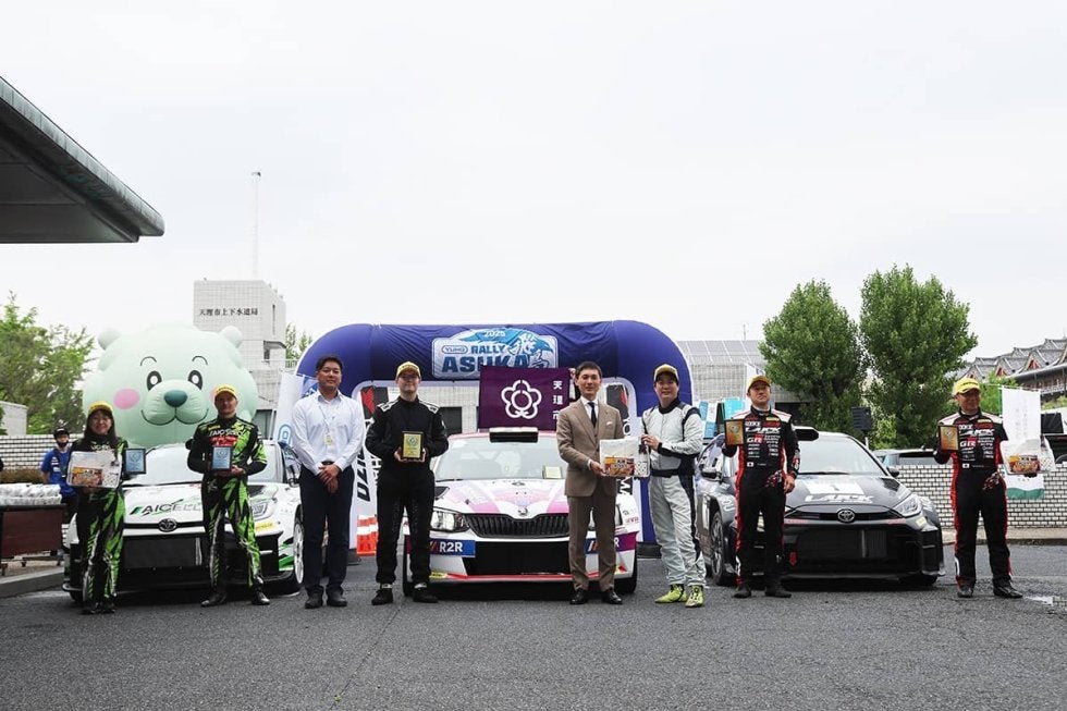 ラリーは、5月16日(金)に天理市の市役所でセレモニアルスタートを実施し、翌17日から本格的なステージが幕を上げた。初日は予報どおり朝から降雨があり、コンディションはウエット。SS1で幸先よく一番時計を刻んだのは、新井大輝/立久井大輝(シュコダ・ファビアR5)だった。ヘイキ・コバライネン/北川紗衣(GRヤリス・ラリー2)に4.1秒、奴田原文雄/東駿吾(GRヤリス・ラリー2)に4.2秒、勝田範彦/保井隆宏(GRヤリス・ラリー2)に6.3秒差をつけてみせる。