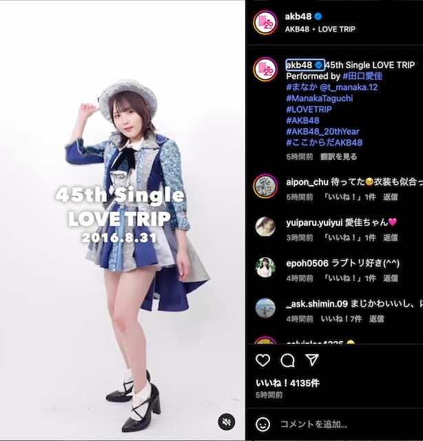 AKB48 田口愛佳、「LOVE TRIP」ソロパフォーマンス動画を公開 | 話題の投稿