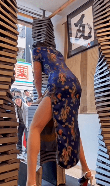 「戸越銀座の商店街で突然…」堀江聖夏、チャイナから超絶美脚のぞかせ渾身の瓦割りムービー公開! | 話題の投稿