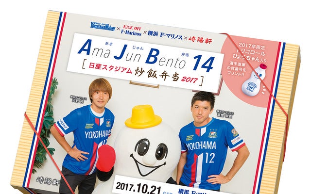 コラボ弁当の基となる「日産スタジアム炒飯弁当」は、炒飯をメインに中華風のおかずを盛り込んだ弁当で、しょう油入れとして今季のユニフォームと選手直筆の背番号がプリントされた2017年限定トリコロールひょうちゃんが封入されている。