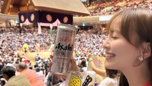「大相撲五月場所千秋楽観戦dayでした。最後の最後に横綱・豊昇龍関の意地、痺れました。かっこよすぎました!!!」と綴り、ビールを飲みながら観戦する自身の写真など数枚の写真をアップ。