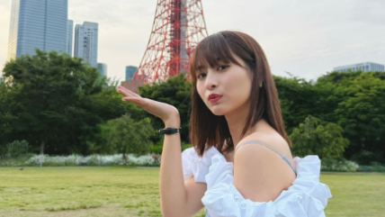 美しい肩をあらわにしたオフショルワンピをまとい、東京タワーをバックに写った栗子が可愛すぎると話題になっている。