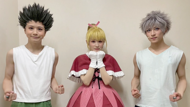 「可愛い可愛い、弟子2人と」とアップされた写真は、『HUNTER×HUNTER』THE STAGE 3で共演するゴン役の西山蓮都、キルア役の阿久津仁愛とのスリーショットだ。