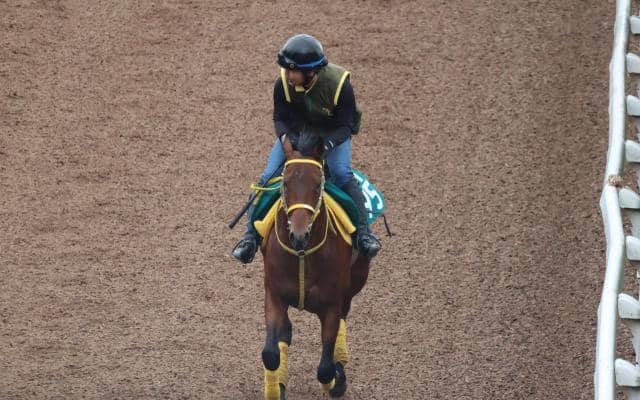 時計はダイシンヨークが4F55.8秒、フィオラーノが4F55.9秒をマークして、2頭とも1Fは12.8秒。ただ、手応えはダイシンヨークが強め以上に追っていて、フィオラーノは馬なり。フィオラーノは毛艶の良さも目立っていて、追い切りを進めていけば、もっと良くなりそうな雰囲気がある。
