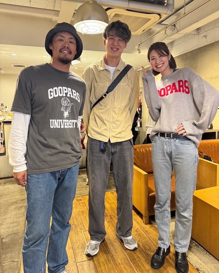 自身が運営するアパレルブランドGOOPARSのお店にバレーボール日本代表の小野寺大志が訪れたようだ。