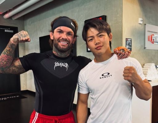 写真には、元UFCファイターであるコーディ・ガーブラントとの2ショットが映っており、互いに笑顔で拳を突き合わせる姿が印象的だ。