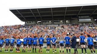 試合後、メインスタンドの観客に挨拶する埼玉パナソニックワイルドナイツの選手たち