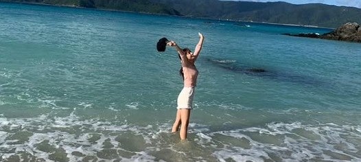 前回は映画の舞台となった鹿児島県で舞台挨拶をして、合間に奄美大島のビーチへも行くことができたそうだ。