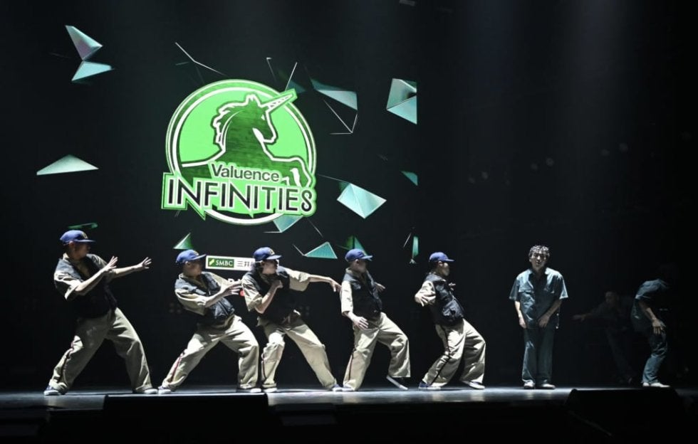 5th Match後攻に登場したのはブレイキン、ヒップホップ、ハウスなど、ストリートダンスの主要ジャンルを融合し、唯一無二のスタイルを確立しているValuence INFINITIES。エースダンサーのMAKOをはじめ、SEIYA、STICH、NAOKI、RYOGA、MASSA、TOMOYA、LÓNが参戦。「インフィニティ」をテーマにし、囚人と看守による終わりのない逃走劇をValuence INFINITIESらしいストリート感を感じさせるダンススタイルで表現した。