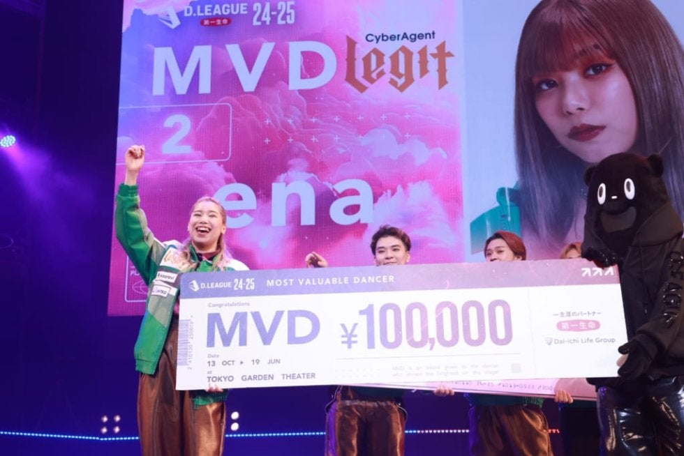 2025年5月22日(木)、日本発のプロダンスリーグ「第一生命 D.LEAGUE 24-25 REGULAR SEASON ROUND.14」が東京ガーデンシアターにて開催され、CyberAgent Legitが3年連続のシーズン王者に輝いた。また、審査員の評価やオーディエンス投票を含め、様々な項目から選出されるMVDには同じくCyberAgent Legitからenaが受賞した。