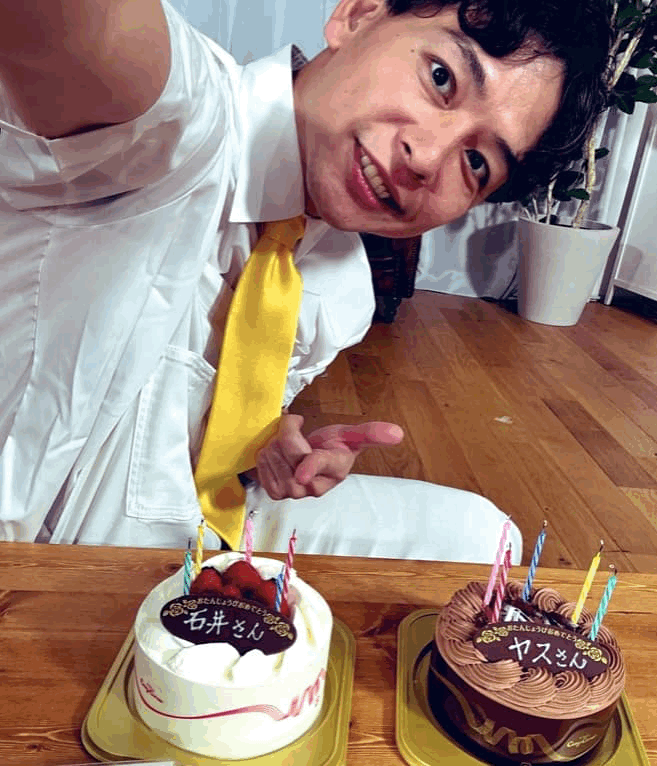 写真には生クリームとチョコレート2種類のケーキを披露。