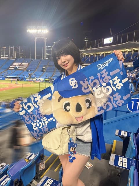 この日も「現地から #どらほー。本日もお仕事終わりに球場へ」と観戦を報告。そして「三浦投手プロ初ヒット。今日の試合現地で観れてよかった〜☺。ヒーローインタビューの岡林選手も後ろのドアラさんも最高でした」と感想をつづり、「本日はハントンライスをいただきました」と球場グルメについても触れるとともに、タオルを掲げる自身の写真などを4枚投稿した。