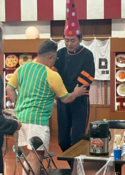 どうやらお笑い芸人のサンドウィッチマン・伊達みきおとじゃれ合っている様子を披露しているようだ。体を近くに寄せ合い、とても楽しそうな様子を披露している。見ているとこちらまで、口角があがりそうになる。