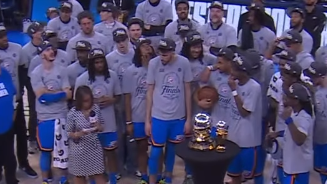 ウェスタン・カンファレンスファイナルMVPの発表動画を投稿、栄えある“アービン・マジック・ジョンソン・トロフィー”を手にしたのは、オクラホマシティ・サンダーのシャイ・ギルジャス=アレクサンダー(SGA)。今シリーズでは得点、守備、リーダーシップすべてでチームをけん引し、34得点中フリースローはわずか4本という事実も話題を呼んでいる。
