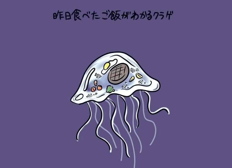 透明なクラゲの中には、食べたものがくっきりと分かるようになっており、ファンからも「面白いアイデア」「ウソつけない」など秋山のイラストに面白がるコメントが多数寄せられていた。