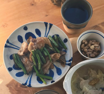 続けて「お茶漬けでいいかー!みたいな。そんな時は、どこか疲れていたりして。無理をせず休むことも。ダメな自分を責めることなく、そんな日もあっていいよね」と述べ、「今日は、美味しそうな『ニンニクの芽』にチカラをいただいて簡単なお料理を。本当に美味しい食材たちに、やっぱり元気をいただく」と感想を伝えた。