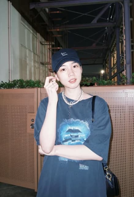 複数枚の写真も公開しキャップにビックシルエットTシャツ、スカートとカジュアルな私服を披露した。