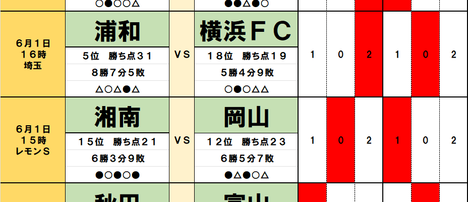 今回のtotoはJ1第19節の10試合と、J2第18節の3試合が対象となっている。過去のデータや直近の様子などから、分…