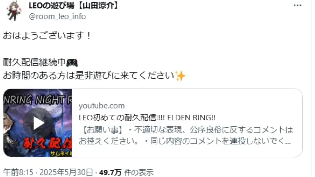 山田涼介は自身のYoutube「LEOの遊び場」で、登録者100万人まで耐久配信することをアップした。なんと約19時間に及ぶ配信の上、100万人の登録者を達成した。配信時間含め34時間起きてるという山田だったが、疲れた顔一つ見せずどんな時も普段と変わらない容姿がファンを魅了した。普段見られない朝食の様子やゲーム配信者達との雑談姿に、長時間配信も飽きずに見られたようだ。どんな姿もサマになる姿は、まさにトップアイドルである所以なのだろう。