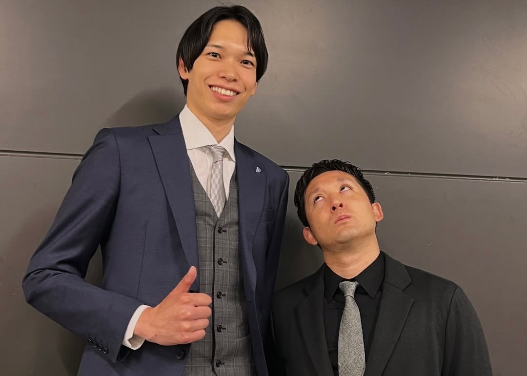 山内は『B.LEAGUE AWARD SHOW 2024-25』で一緒になったという元プロ野球選手でタレントの杉谷拳士との2ショットを公開。写真は、身長204cmの山内を杉谷が見上げるというおもしろい構図となっている。
