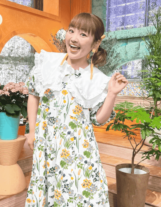 柳原らしいキュートでユーモラスなキャプションとともに、さまざまな番組出演時のショットを披露。