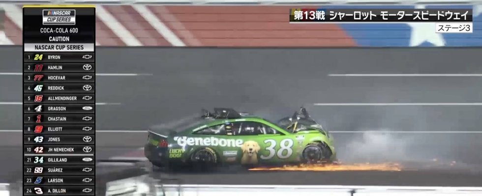 全米人気ナンバーワンレース、NASCAR(ナスカー)の第13戦が開催。レース中に1台のマシンが激しく何回転もスピンするシーンが映し出され、視聴者も肝を冷やすこととなった。