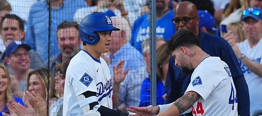ヤンキース戦で本塁打を放ったドジャース・大谷翔平(左)【写真:荒川祐史】