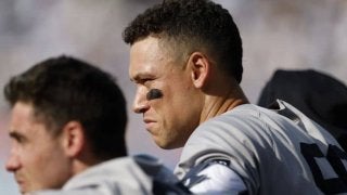 2本塁打を放つも、ベンチで険しい表情を浮かべたジャッジ。ヤンキースの苦境ぶりは、彼の顔つきが物語った。(C)Getty …