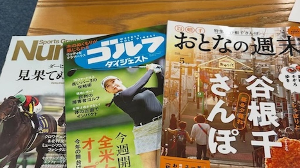 津田の楽屋に用意されていたのは、「おとなの週末 谷根千さんぽ」「ゴルフダイジェスト」などと書かれた雑誌だ。