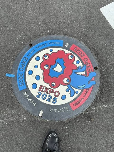「ミャクミャクさんに会った」という言葉とともに、ちらりと靴も写った「大阪・関西万博デザインマンホールふた」の写真を投稿した。
