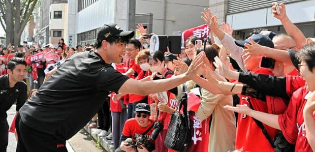 パレードでは、選手15人とチームスタッフらがパレードカーに乗り、ブースターの熱い声援に手を振って応えた。