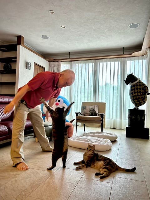 「そのうちタマは ラジオ体操ができるネコになると思う……。」という言葉とともに、愛猫”玉三郎(タマ)”たちの写真を投稿。