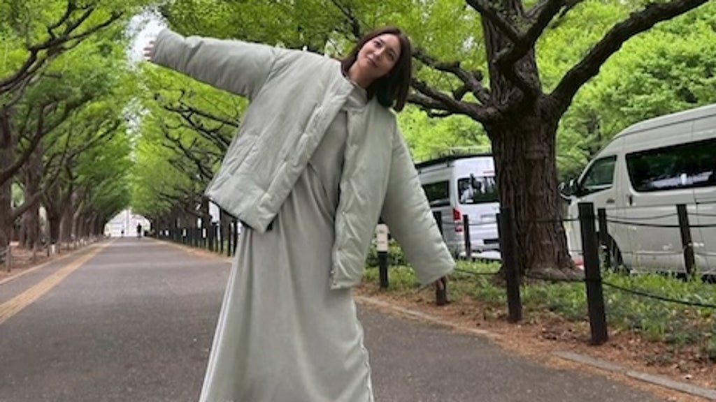 朝に撮影したオフショットのようだ。写真には、木々が並ぶ道で、両手を広げて気持ちよさそうに微笑む相武の姿が収められている。