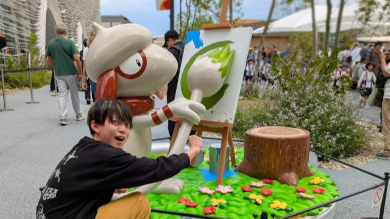 写っているのは、ペイントポケモン・ドーブルをモチーフにした万博限定のフォトスポットだ。