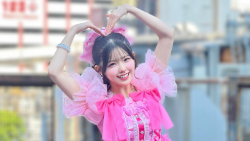 ピンクのフリフリミニスカ衣装から美脚をチラ見せし、お茶目ポーズで写った中本が可愛いと話題だ。