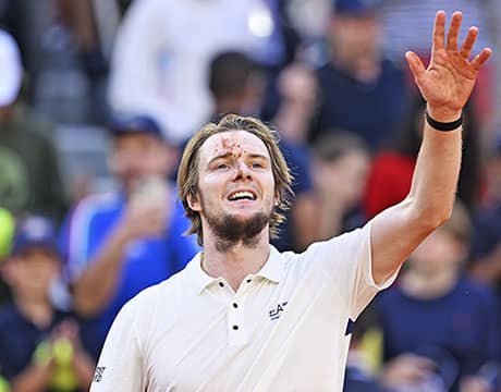 テニスの全仏オープン(フランス/パリ、レッドクレー、グランドスラム)は2日、男子シングルス4回戦が行われ、世界ランク62位のA・ブブリク(カザフスタン)が第5シードのJ・ドレイパー(イギリス)を5-7, 6-3, 6-2, 6-4の逆転で破り初のベスト8進出を果たした。