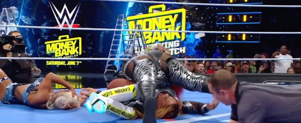 日本時間5月31日に放送された「SMACK DOWN」にて6月に開催される「MONEY IN THE BANK」のメインマッチ、マネー・イン・ザ・バンク戦の本戦出場を賭けてナオミとジェイド・カーギル、ナイア・ジャックスがトリプルスレットマッチに挑んだ。