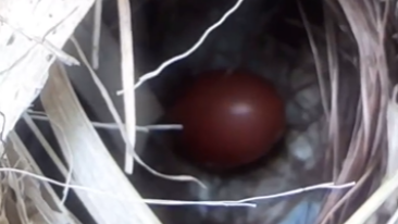 「先日、わさわさになった枝葉を剪定している時に見つけた鳥の巣。これまでも何度か使い古しの巣はありましたが、、、卵が入っている状態を見るのは初めてで!」と綴り、1本の動画をアップ。