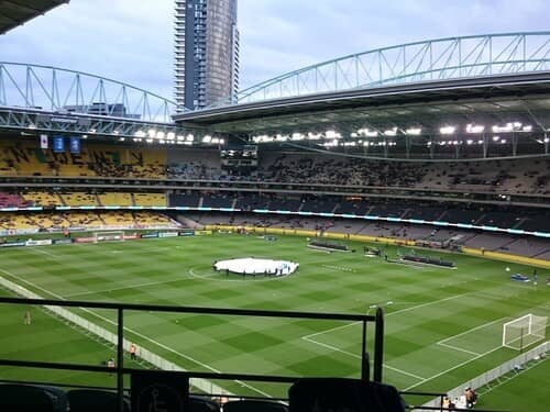 2016年10月には、ロシアW杯予選のアウェーゲームがメルボルンのドックランズ・スタジアム(2000年完成。5万6000人収容)で行なわれた。これも、クリケットとオージーボール用のオーヴァルで、記者席も1階にあって見にくそうだった。