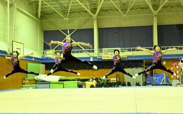 男子新体操は女子で禁止されているバック転や宙返りなどアクロバティックな演技が魅力だ。だが、競技人口は少ない。男子新体操部がある岩手県内の中学も滝沢南(滝沢市)しかない。