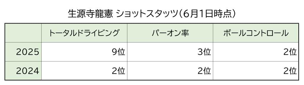 生源寺龍憲ショットスタッツ