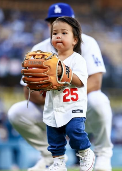「Eli Edman used his dad’s glove to throw out the first pitch on his bobblehead night.」と綴り、最新ショットを投稿。