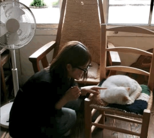 白い猫と戯れる写真や季節の花やグルメを堪能する写真を披露。