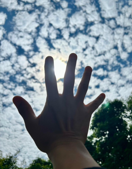 「おはよう!今日もお互いに行ったりましょうね!」と1日をポジティブに過ごせるコメントとともに、木がある場所から、空へ向かって差し出した手のショットをアップしている。