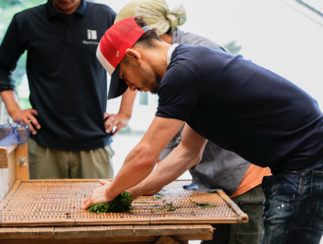 続けて「国内屈指の釜炒り茶の産地である宮崎県五ヶ瀬町で有機栽培の茶園を手がける『宮崎茶房』」と述べ、「20種類を超えるたくさんの品種を育てながら、すっきりと体にしみわたる芳醇なお茶をつくり続けている」と紹介し、投稿を締めくくった。