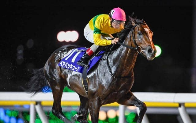 4日、船橋競馬場で行われた第5回若潮スプリント(3歳・重賞・ダ1200m・1着賞金1700万円)は、3番手から脚を伸ばした町田直希騎手騎乗の1番人気ベアバッキューン(牡3、川崎・鈴木義久厩舎)が、2番手から3角で先頭に立った3番人気ハセノブライアン(牡3、船橋・張田京厩舎)に3馬身差をつけ優勝した。勝ちタイムは1分13秒6(重)。