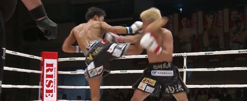 パンチに見せかけて右ハイキックを一閃するフルコンタクト空手仕込みの衝撃KO。17歳の“超・超攻撃的新人”の鮮烈なKO劇…