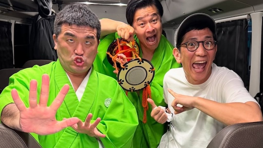 写真にはお笑いコンビ・すゑひろがりずの南條庄助と三島達矢、そして柴田の3人が写っている。