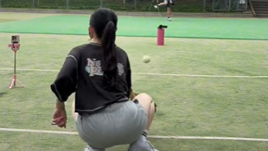 キャッチャーミットを構える越だが、低めのボールに苦手意識があるのか捕球をミスし避けてしまったようだ。