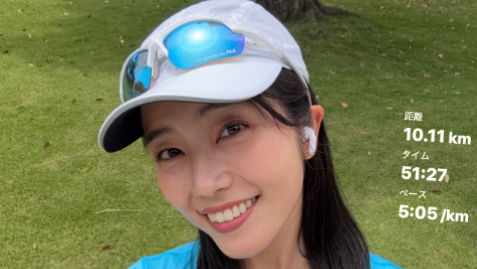 サングラスに帽子、長袖インナーにロングスパッツというやや暑そうなスタイルながら、10キロをキロ5分5秒のペースで完走するスタミナにファンの注目が集まっている。